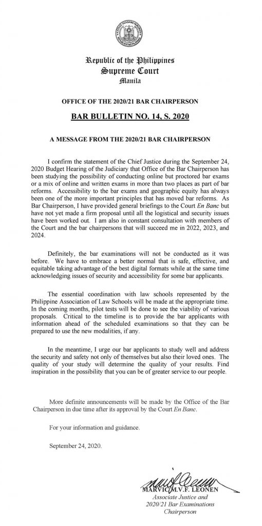 BAR BULLETIN NO. 14, S. 2020