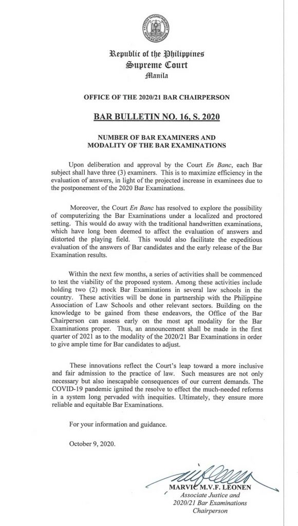 Home » Advisory » BAR BULLETIN NOs. 15 and 16, S. 2020