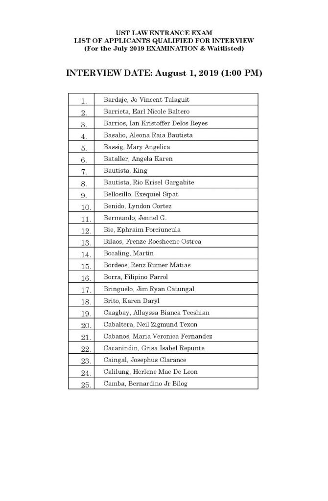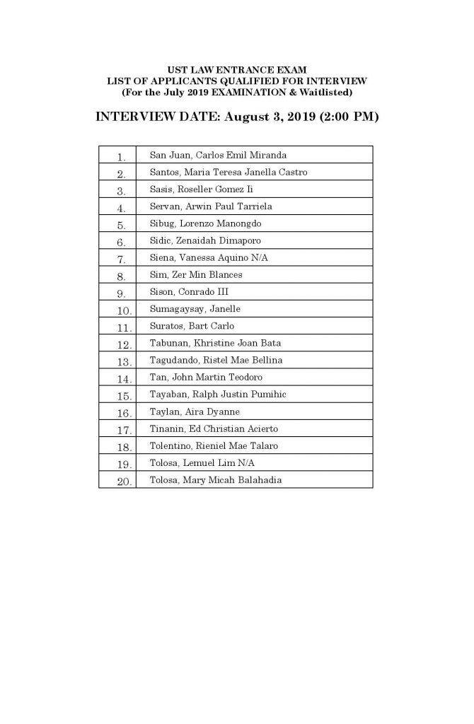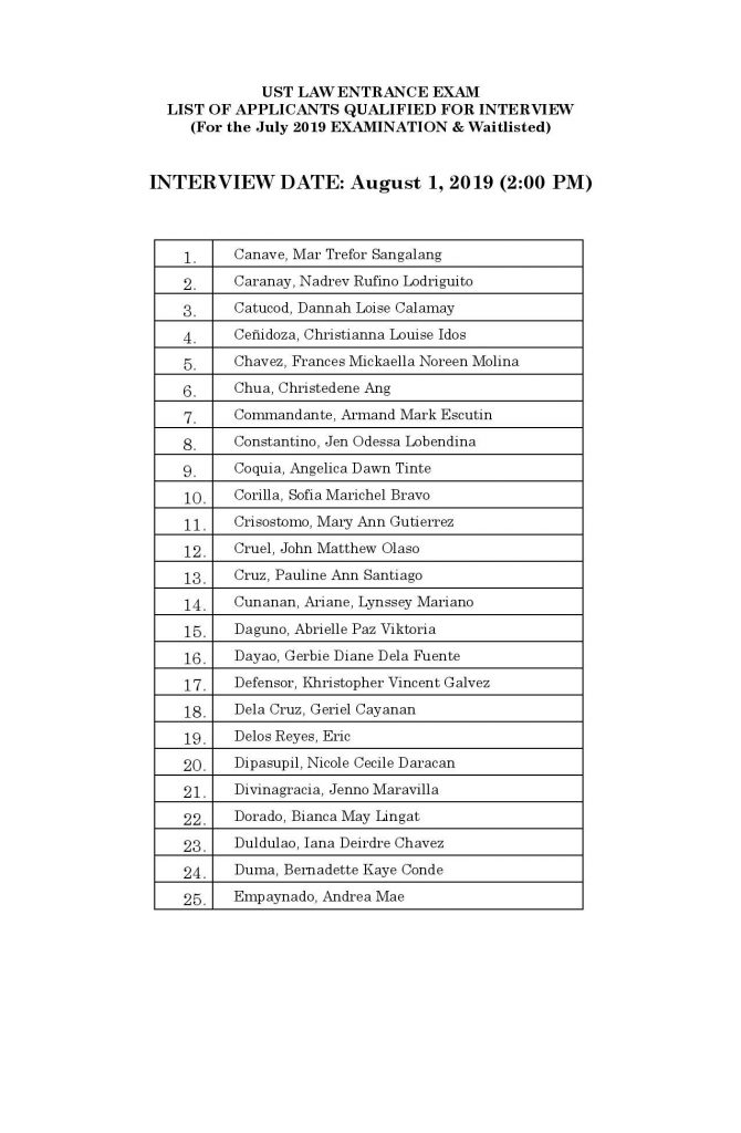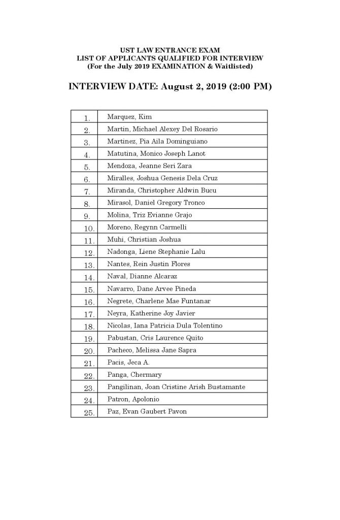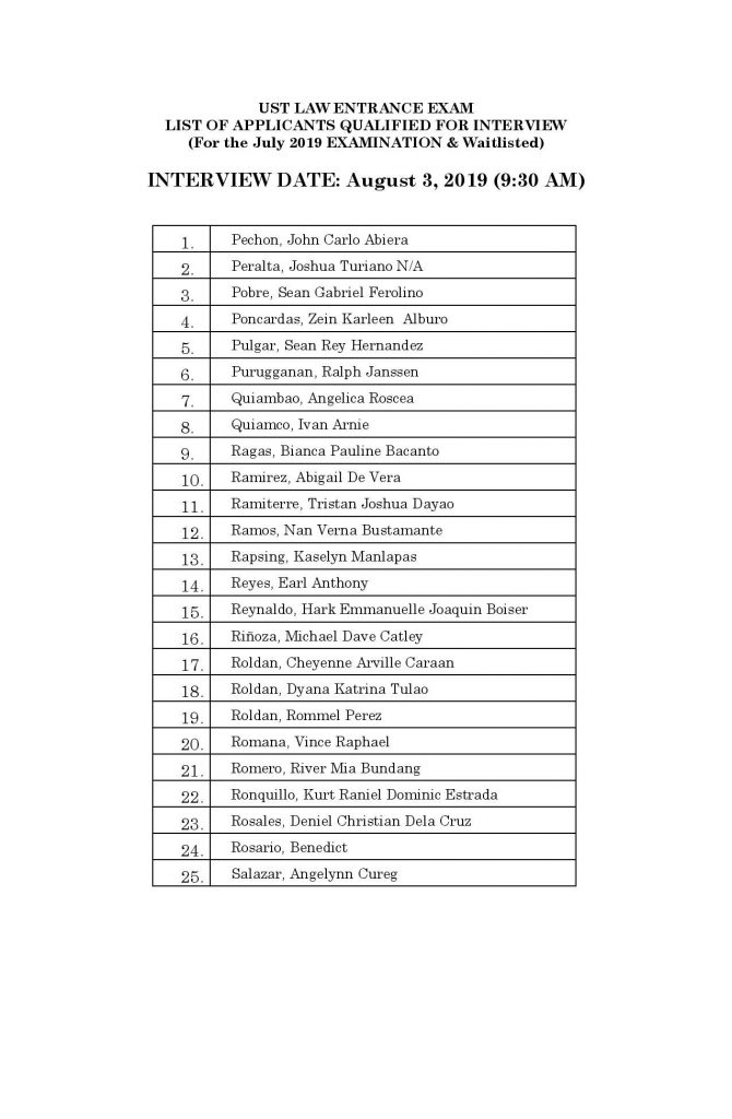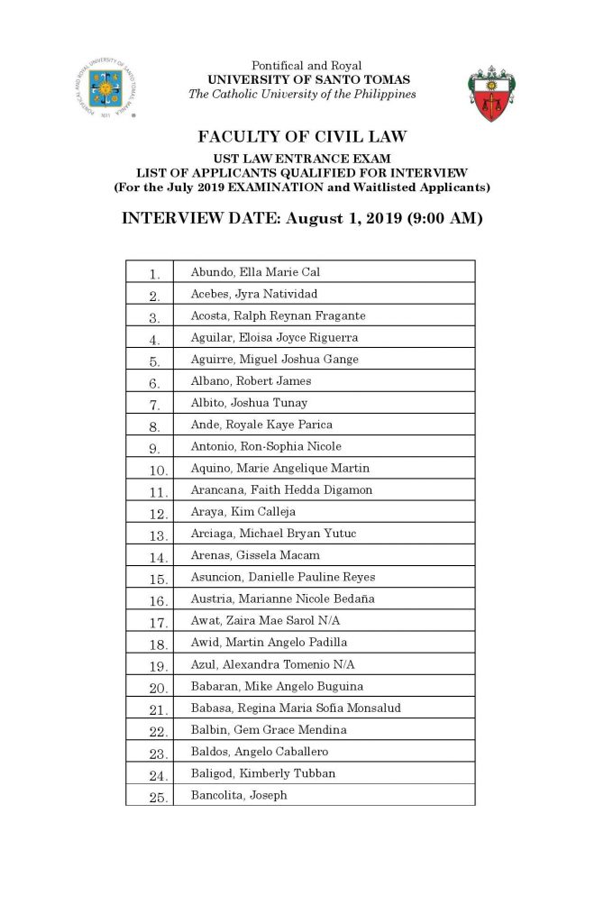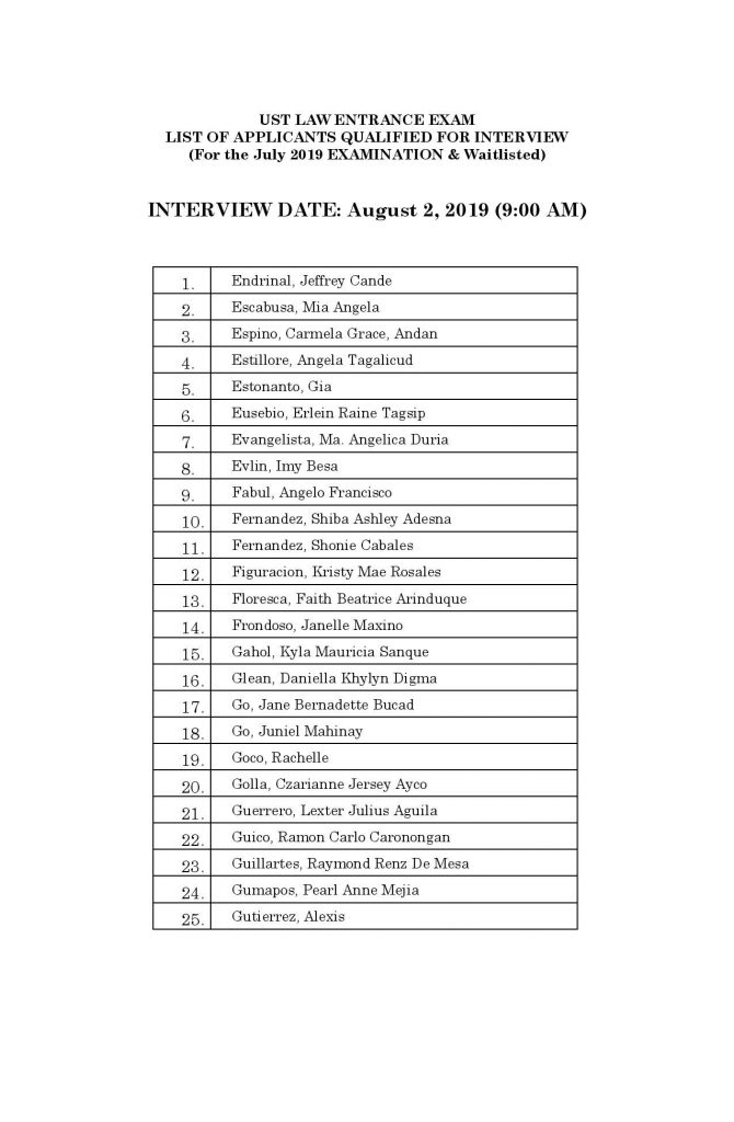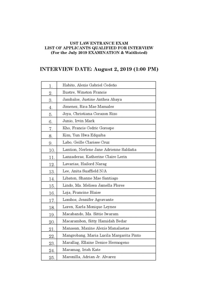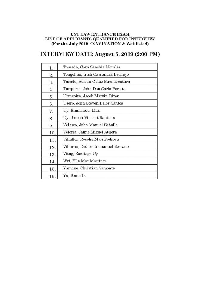 List of Applicants Qualified for Interview-July 2019 Exams & Wait-listed