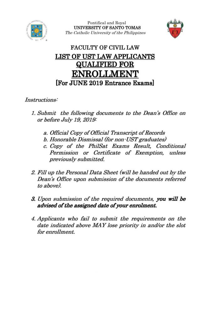 List of Qualified Applicants for ENROLLMENT (For June 2019 Exams)