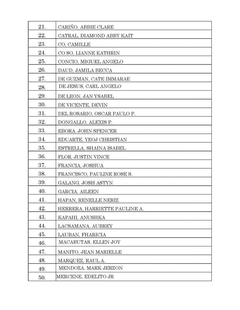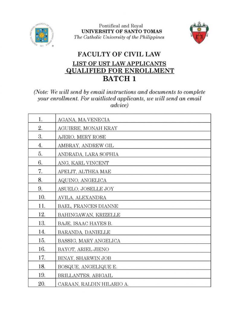 Home » Advisory » LIST OF UST LAW APPLICANTS QUALIFIED FOR ENROLLMENT – BATCH 1