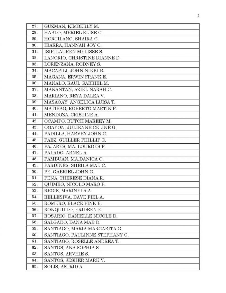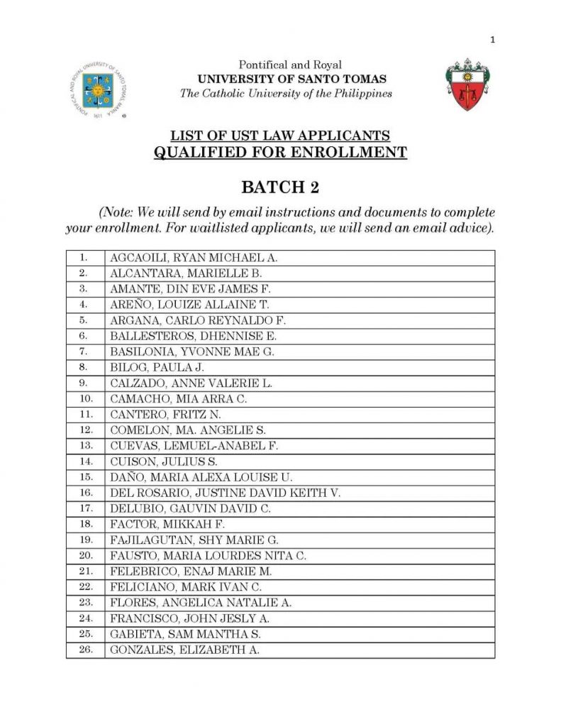 Home » Advisory » LIST OF UST LAW APPLICANTS QUALIFIED FOR ENROLLMENT – BATCH 2
