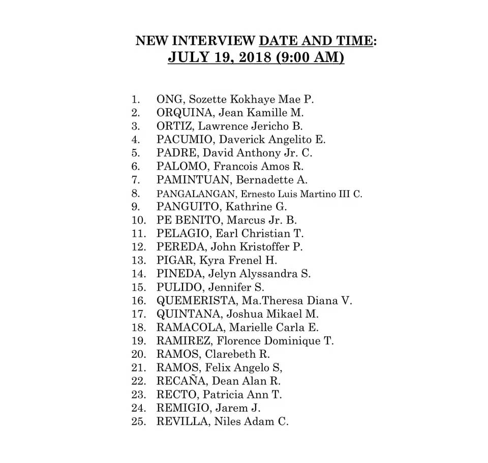 Home » Advisory » New schedule of Interview (For the cancelled July 17, 2018 Interview)