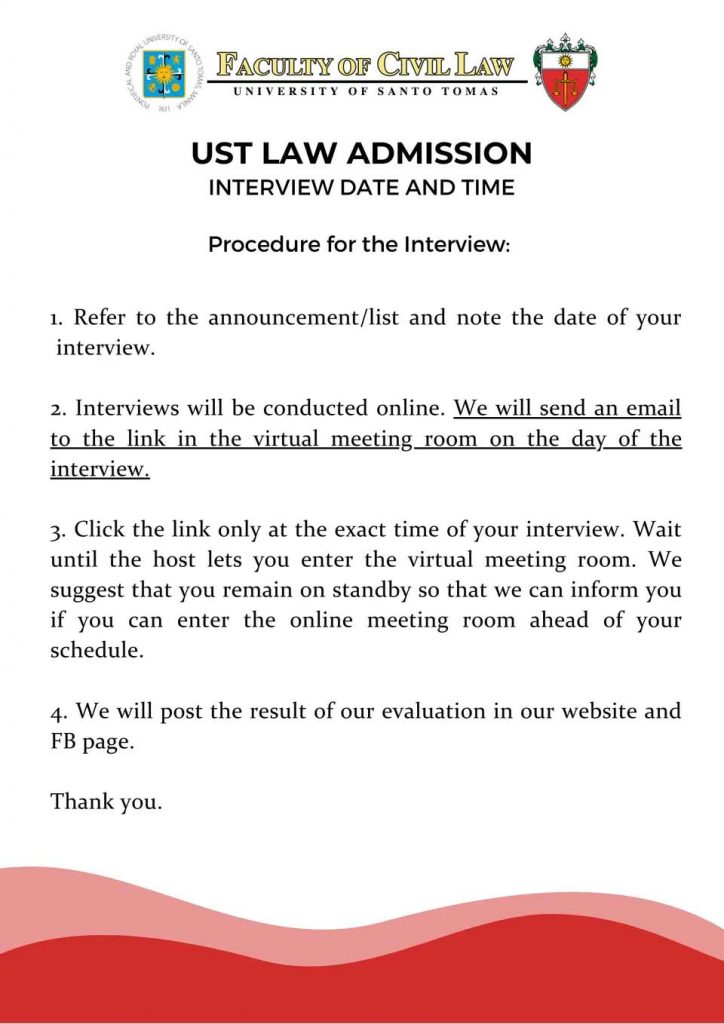 Home » Advisory » UST Law Admission Interview Schedule – Batch 1