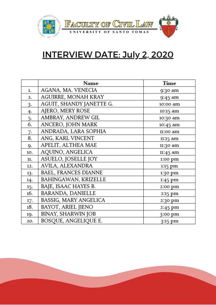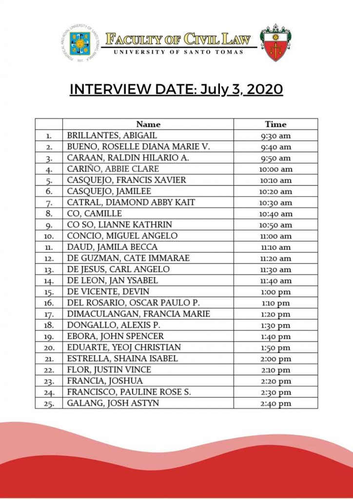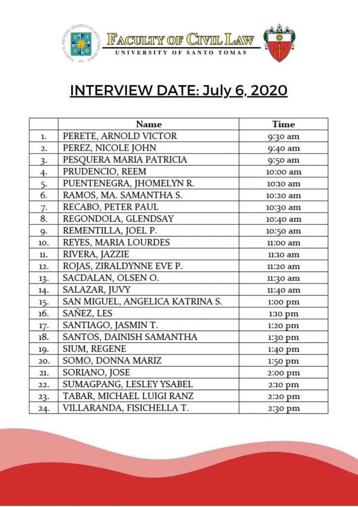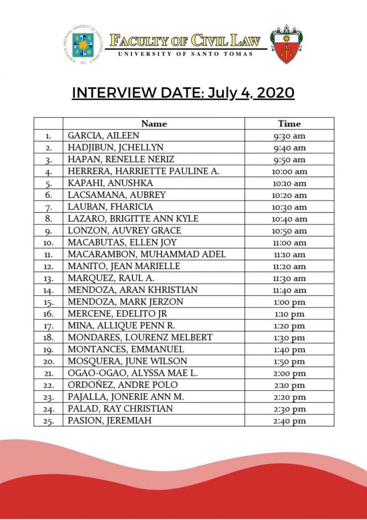 UST Law Admission Interview Schedule – Batch 1